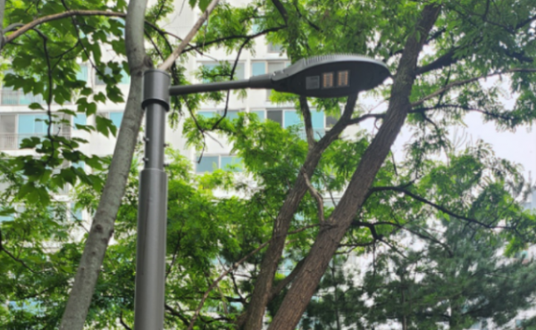 공간을 적게 차지하는 슬림한 메탈 폴대형 보안등을 설치하여 보행 흐름을 방해하지 않으면서 충분한 조도를 확보했습니다.