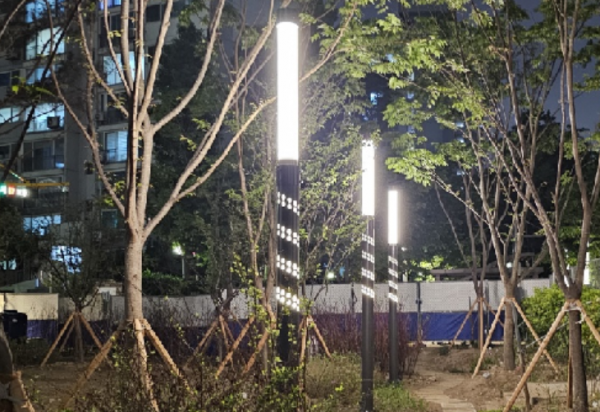 열주등은 단지와 외부 도로를 잇는 연결 녹지 및 보행자 전용 도로를 중심으로 배치되었습니다. 이를 통해 야간에 자칫 단절될 수 있는 공간을 빛으로 연결하여 연속성 있는 보행 동선을 확보하였으며, 기부채납 부지가 단순한 통로를 넘어 하나의 문화적 휴식 공간으로 기능하도록 구성하였습니다.
