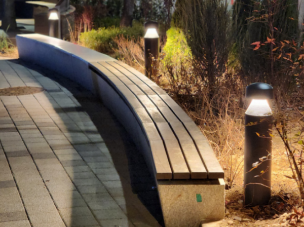 서울 광진구의 도심 속 휴식 공간인 '너븐마루' 보행자 쉼터 및 산책로에 설치된 경관 볼라드 조명 시공 사례입니다.