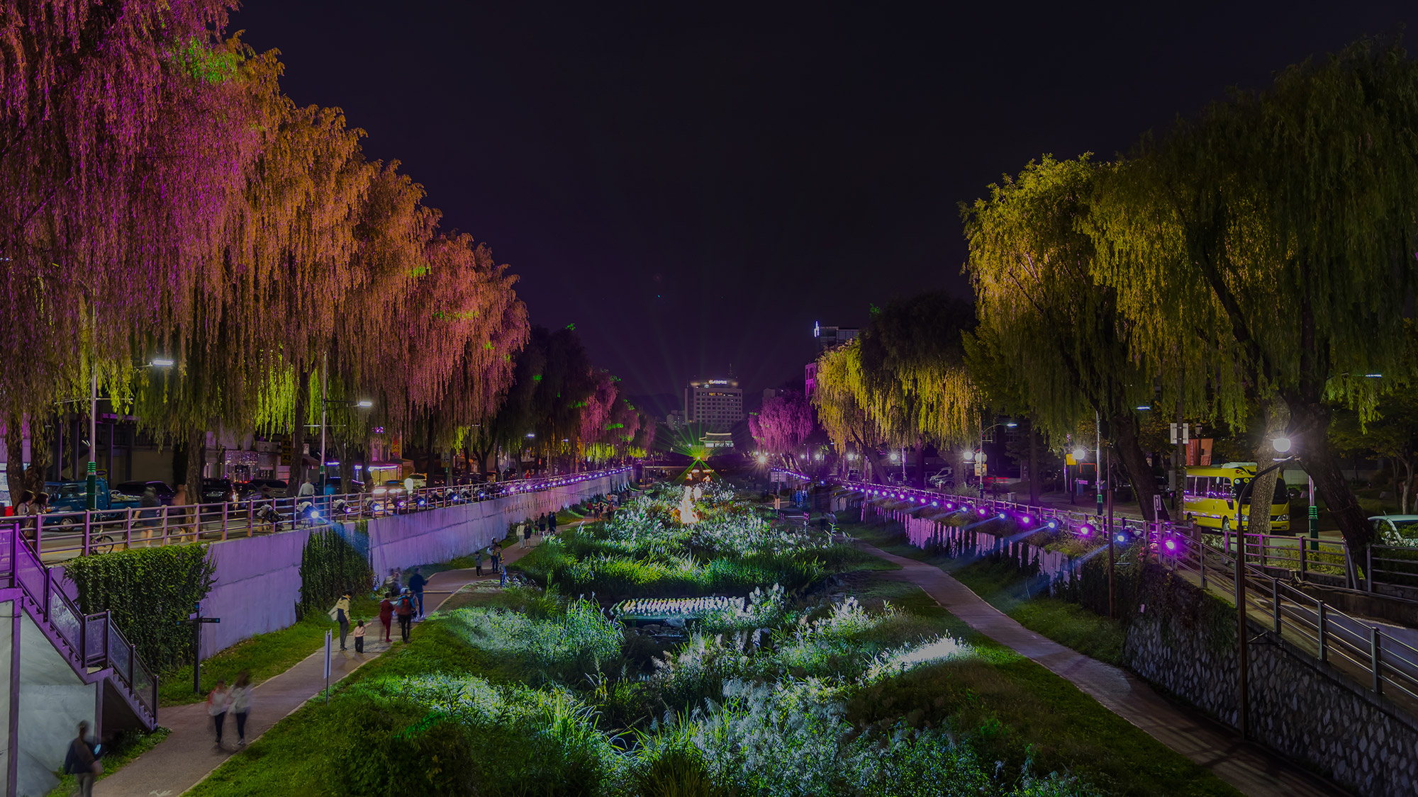 공원과 산책로를 은은하게 비추는 조명