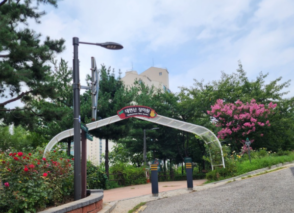 장미원 입구의 조형물 및 벤치 등 공공시설물과 통일감을 주는 다크 그레이 컬러를 채택하여 시각적 안정감을 더했습니다.