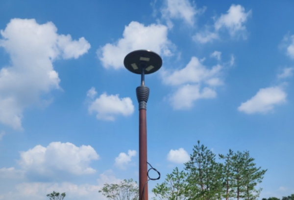 기존의 돌출형 베이스커버 대신 매립형 설계를 적용하여 지면과 폴이 맞닿는 하단부가 매우 깔끔하게 마감되었습니다.