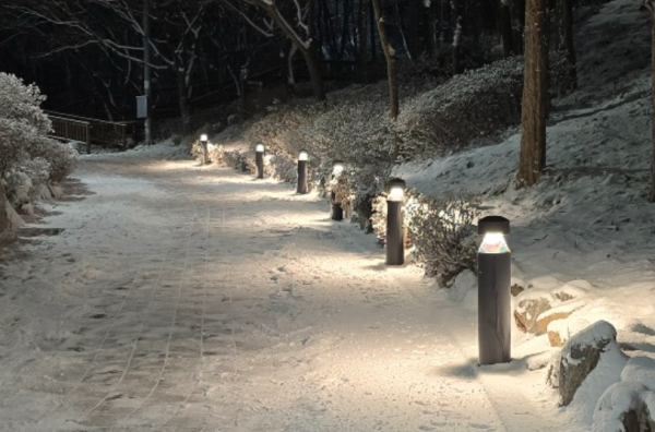 빛이 아래로 향하게 설계되어 산책하는 시민들의 눈부심을 최소화하고, 발밑의 장애물을 확실하게 식별할 수 있도록 돕습니다.
