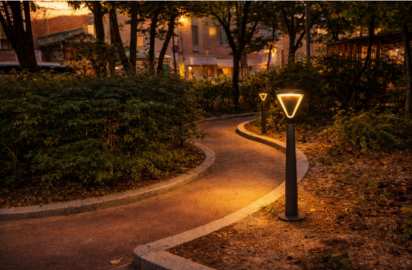 낮에는 조형물 같은 미적 가치를 더하고, 밤에는 선명한 삼각형 빛의 테두리가 보행자에게 명확한 방향성을 제시합니다.